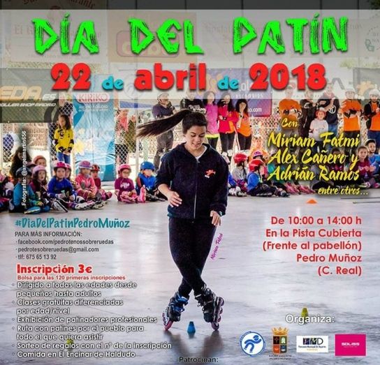 Pedro Muñoz acoge dos grandes eventos este fin de semana, el domingo día 22, a partir de las 10 de la mañana y hasta las 14 horas en la pista cubierta, se celebra el Día del Patín, donde estarán presentes patinadores de nivel nacional como Miriam Fatmi, Alex Cañero y Adrián Ramos.