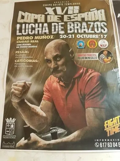 Este fin de semana se va a disputar, en el Cine-teatro Municipal de Pedro Muñoz, la XVII Copa de España de Lucha de Brazos, organizada por el club Quijote Templarios. Su presidente, Miguel Ángel la Osa, sin duda ha echo un enorme esfuerzo para que de nuevo Pedro Muñoz acoja esta Copa de España, donde se va a dar cita lo mejorcito de este deporte de la Lucha de Brazos.