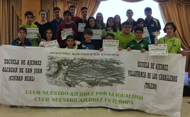 El Campeonato de Castilla-La Mancha por edades ha finalizado hoy en Ciudad Real con el balance de un oro y tres platas para el grupo de chicos y chicas que han representado a Nuestro Ajedrez en Europa. La aportación más importante al medallero ha venido protagonizada por la categoría sub- 12, con Nuria Lozano Serrano revalidando el título de campeona regional y con Alonso López Núñez como subcampeón, quedando a un paso del oro, después de realizar un excelente torneo.