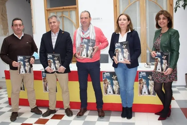 El alcalde de Miguel Esteban, Pedro Casas; junto al presidente de la Junta de Hermandades, Joaquín Patiño; el Hermano Mayor de la Hermandad del Cristo Atado a la Columna y Santa Mujer Verónica, Manuel Miguel Cantos; la pregonera de la Semana Santa 2022, Cirila Martínez; y la concejal de Festejos, Turismo y Tradiciones, Mari Nieves Patiño; han presentado la programación de actos religiosos, culturales y procesionales de la Semana Santa migueleta.