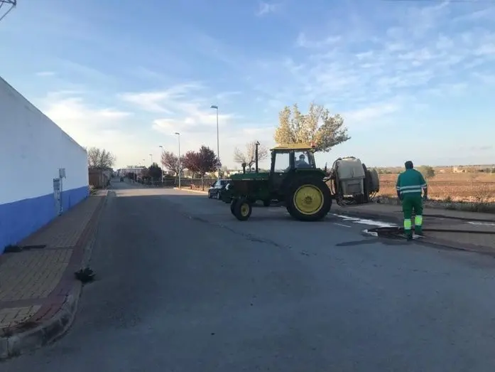 Numerosos agricultores migueletes se han sumado voluntariamente al dispositivo de desinfección de calles puesto en marcha por el Ayuntamiento de Miguel Esteban para intentar prevenir y contener la expansión de la epidemia del coronavirus (Covid-19) que azota a países de todo el mundo, incluido el nuestro.