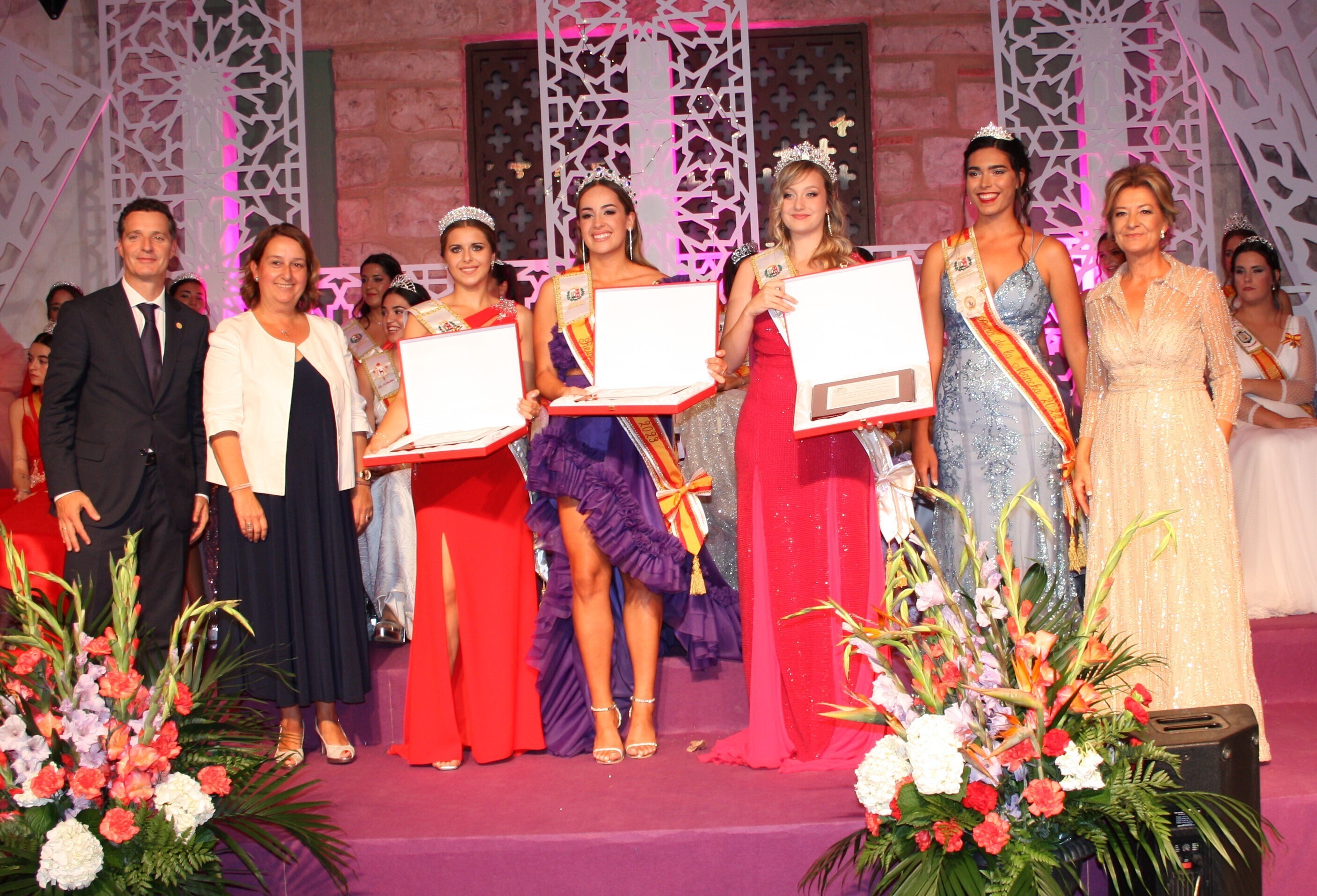 Como es tradición, el acto comenzó con la coronación de la joven Lara Jiménez como Reina de las Fiestas de Miguel Esteban 2023, quien recibió la corona de manos de su antecesora, Pilar Arinero. Ya coronada, la Reina migueleta fue la encargada de imponer las correspondientes bandas a sus Damas de Honor, Gema Medina y Mari Nieves Jiménez.