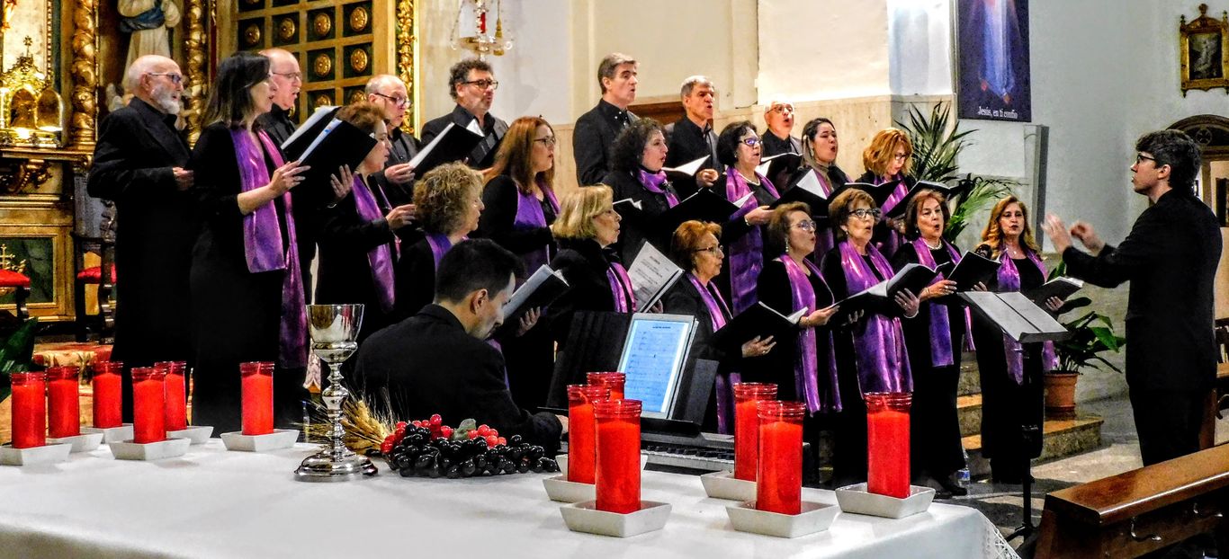 El Miércoles Santo, la Iglesia Parroquial de San Andrés Apóstol acogió el concierto presentado por la Coral Polifónica 'Mar de Vides', bajo la dirección de Pedro Ferrer. El repertorio, seleccionado, incluyó obras musicales como ‘Signore delle cime’ de G. di Marzi, ‘Ave verum corpus’ de W. A. Mozart, ‘Oh, ¡rostro lacerado!' de J. S. Bach y 'Cantique de Jean Racine' de G. Fauré. Eugenio Caravaca, concejal de Cultura, extendió su gratitud a los sacerdotes Juan Antonio y Ángel Manuel por la cesión del recinto y elogió la labor de la coral en este evento.