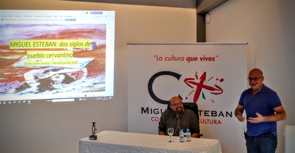 La noche del viernes 5 de abril, a las 20.30 horas, el Auditorio del Ayuntamiento fue el escenario de la charla histórica "Miguel Esteban, dos siglos de pueblo Cervantino". Presentada por Vicente Torres Encinas, historiador 'miguelete', profundizó en la relación entre Miguel Esteban y el universo cervantino durante una charla que atrajo a casi un centenar de personas interesadas en la historia local. El análisis realizado durante la conferencia exploró los vínculos entre Cervantes y su personaje, Alonso Quijano.