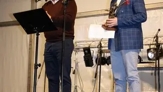 El pregonero, que señaló que la Jota Pujada forma parte del patrimonio “humilde y a la vez rico patrimonio miguelete”, deseó que “la magia del Carnaval de siempre se funda con la del Carnaval de ahora” y animó a todos los presentes a “bailar jotas y no sentir el bolsillo”.