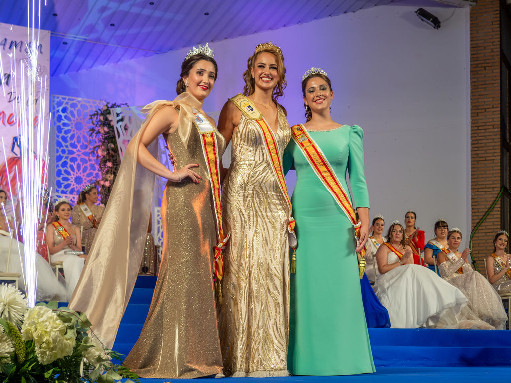 En esta ceremonia cargada de solemnidad, se coronó Elvira cómo a la Reina de las Fiestas de Miguel Esteban, acompañada de la imposición de bandas a sus tres Damas de Honor, Mª Ángela, Mª Carmen y Lorena.