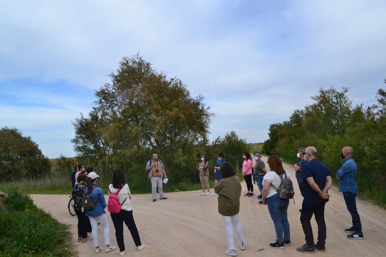 Con su correspondiente mascarilla y guardando la distancia de seguridad, los participantes efectuaron un recorrido histórico por la Reserva Ornitológica ‘Los Charcones’ mientras escuchaban multitud de sucesos y datos de siglos pasados, como pleitos entre municipios, nombres que determinadas zonas tenían antiguamente, cómo y por qué se construyeron puentes y molinos de agua o todo lo que rodeaba al cobro de los portazgos.