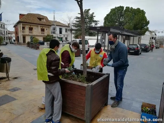 Las jardineras de Miguel Esteban han renovado sus flores gracias a los alumnos del Centro Comarcal de Educación Especial Mª Auxiliadora de Campo de Criptana. A través del convenio de colaboración que tiene el Ayuntamiento desde hace varios años, los jóvenes pueden realizar las prácticas del Programa de Formación para la Transición a la Vida Adulta.