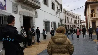 Concejales del Ayuntamiento, trabajadores municipales, Policía Local y algunos vecinos de la localidad, además del alcalde, Pedro Casas, se han concentrado a las puertas del consistorio de Miguel Esteban para guardar un minuto de silencio en memoria de las víctimas de la violencia de género y expresar su repulsa hacia los maltratadores.