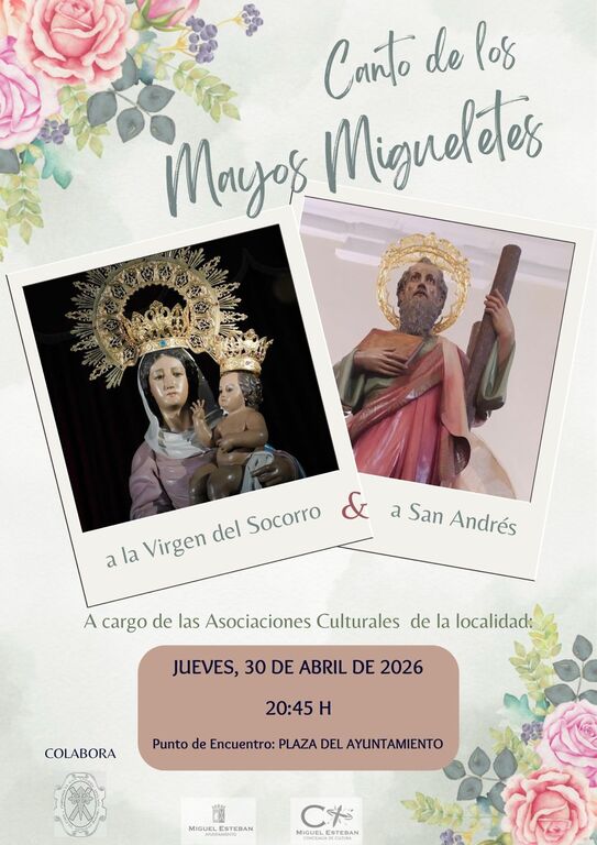 El Ayuntamiento de Miguel Esteban, a través de su concejalía de Cultura, invita a todos los vecinos y visitantes a participar en una de las tradiciones más arraigadas y queridas de nuestro municipio: el Canto de los Mayos Migueletes.