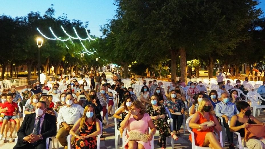 El evento comenzaba con el saludo de los presentadores y con la reproducción de un video conmemorativo. Acto seguido llegaba la entrega de trofeos a los homenajeados: Centro de Salud, Policía Local, Guardia Civil, Protección Civil, Residencia Geriátrica ‘Nuestra Señora del Socorro’, Colegio Público ‘Cervantes’, IESO ‘Juan Patiño Torres’, Escuela Infantil ‘La Abejita’, Cáritas y al diseñador Alejandro de Miguel.