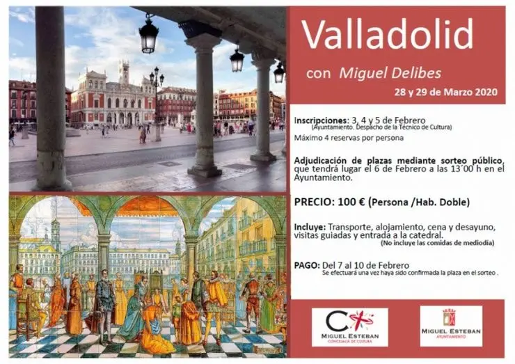 En esta ocasión, el viaje se ha organizado para conmemorar el centenario del nacimiento de Miguel Delibes y la ruta estará relacionada con la obra ‘El hereje’. Asimismo, en el mes de abril, dentro de las Jornadas Cervantinas que se celebran en Miguel Esteban, se conmemorará el centenario de la muerte de Benito Pérez Galdós, “por lo que este año la actividad cultural en Miguel Esteban tendrá muy presente estos dos centenarios destacados”.