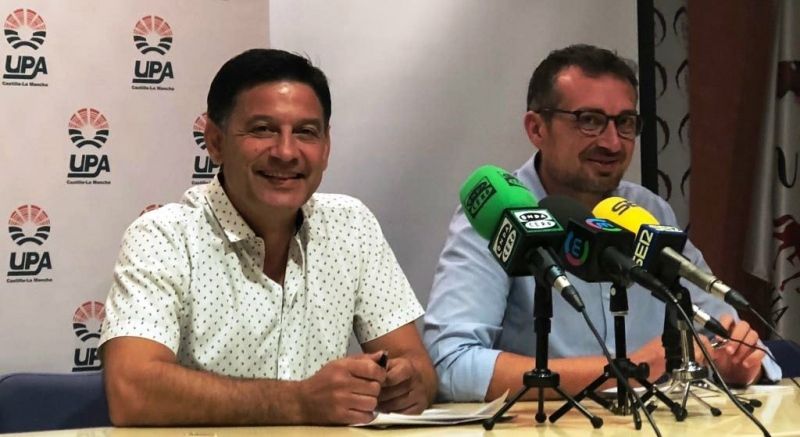 El secretario general de la Unión de Pequeños Agricultores y Ganaderos de Castilla-La Mancha, Julián Morcillo, y el responsable de Vino de la UPA, Alejandro García-Gasco, han presentado y explicado, en la sede de la DO Mancha en Alcázar de San Juan, el documento con el posicionamiento y las alegaciones de la organización agraria ante el Plan Estratégico que en fechas recientes dio a conocer la Consejería de Agricultura, Medio Ambiente y Desarrollo Rural, un plan consensuado con todo el sector.