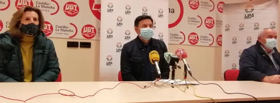 El secretario general de UPA Castilla-La Mancha, Julián Morcillo, acompañado del secretario general de UPA Ciudad Real, Pascual Ortiz, y María Sánchez Seoane, responsable de Desarrollo Rural de UPA CLM, ha mostrado la oposición de la organización ante los sobre recortes de la Confederación Hidrográfica del Guadiana que “deja contra las cuerdas a los agricultores y regantes del Alto Guadiana”.