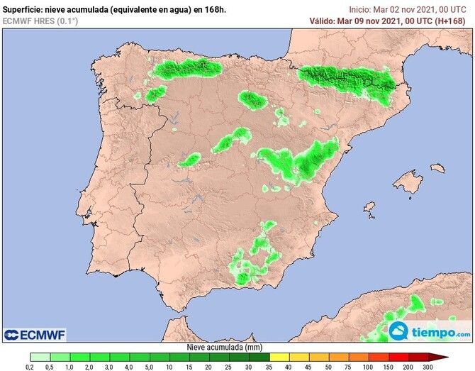 La incertidumbre sobre la posición final e intensidad de la dana y baja superficie aún no permite especificar en qué puntos se producirán las precipitaciones, su intensidad y acumulados, según los modelos respectivos del ECMWF. Las precipitaciones abundantes están garantizadas en el tercio norte.