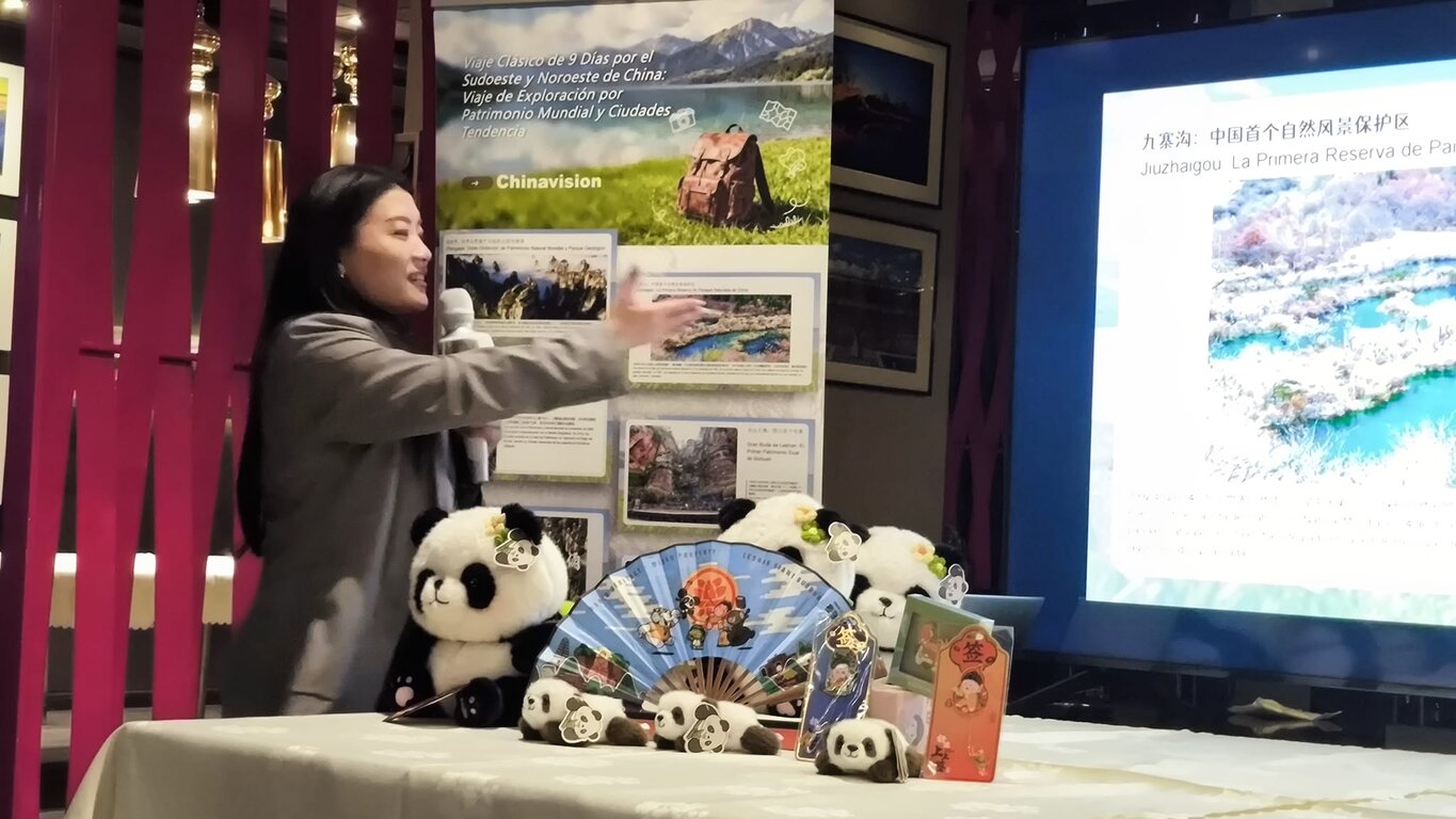 El acto contó con la participación de responsables del sector turístico y representantes institucionales chinos, además de la exhibición de productos típicos, recuerdos artesanales y peluches de pandas que ambientaron la presentación con un marcado carácter visual y simbólico.