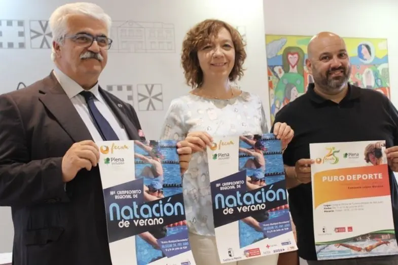 La alcaldesa en funciones de Alcázar, Rosa Melchor y el presidente de FECAM, Eloy Molina, adelantaron en rueda de prensa que la ciudad volverá de nuevo a ser la sede del Campeonato de Natación de Verano que, en 2019, cumple su 18 edición. La cita tendrá lugar entre el 15 y 16 de junio, días en los que la Piscina Municipal alcazareña abrirá sus puertas para que 189 deportistas -28 más que el pasado año- de 19 clubes de Albacete, Ciudad Real, Cuenca y Toledo (uno más que en 2018) compitan en las tres categorías de las que se compone este campeonato. Una cita con el deporte inclusivo que movilizará a cerca de 300 personas entre deportistas, organizadores, voluntarios y familias; que un año más pernoctarán una noche en la ciudad para disfrutar del deporte y de una jornada de convivencia.