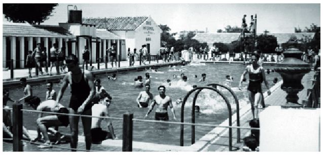 Recuerdo que por aquellos tiempos. la piscina la regentaba Enrique Escobar, que estaba casado con Loli, la hija del fundador de la piscina Leoncio Saiz. Allí tenían una vivienda, a la derecha de la entrada y antes de subir a la piscina, en un precioso patio. Estaban todos los días de todos los veranos que yo recuerdo: la abuela Leoncia, su hija Loli (siempre alegre y afectuosa), su marido Enrique, que subía y bajaba constantemente, y los hijos Enrique, Celia y Jesús. También recuerdo a Celia, también hija del fundador, que se ocupaba de la taquilla y que pintaba muy bien. De todos guardo un cariñoso recuerdo.