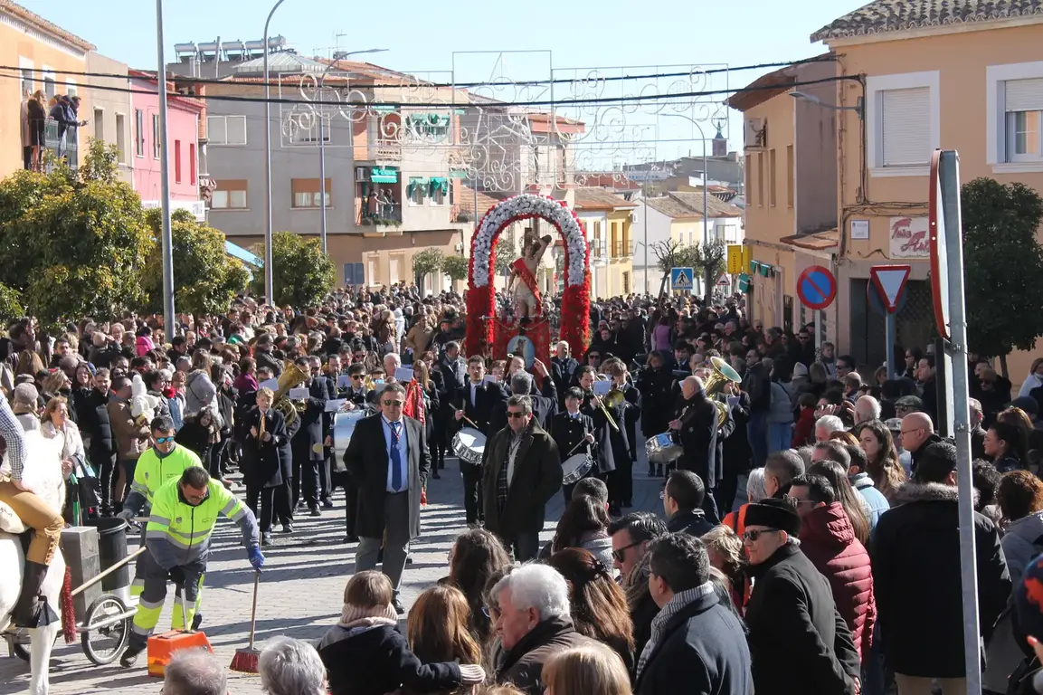 La plasticidad de las procesiones me gusta porque hay toda una liturgia que se desarrolla en la calle, a la vista de todo del mundo, y todo esto se hace con alegría y con música. La música que interpreta la banda de Alcázar es una de las mejores que se pueden escuchar por las calles de una ciudad. A la procesión se le acompaña con cohetes, lanzados durante todo el trayecto de la procesión, durante todo el día de fiesta. Cuando el santo llega a El Arenal, la procesión se abre y se ensancha. Allí le esperan multitud de gente que ya está provista con las sogas para jugar a la comba hasta la hora de comer. Da igual que tengas cuerda para saltar o grupo de amigos con los que saltar, siempre te puedes unir a cualquier cuadrilla y saltar alegremente a la comba, somos así de hospitalarios en Alcázar de San Juan. El santo va acompañado de un nutrido séquito de caballistas que engalanan y embellecen la procesión. Después sube por la calle de su nombre hasta la ermita donde permanecerá todo el día. Por la tarde, de nuevo, saldrá en procesión para bajar hasta la parroquia y recogerse hasta el año que viene. ¡Feliz San Sebastián!