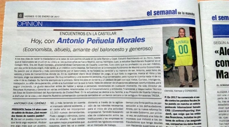 El Semanal de la Mancha está publicando periódicamente una sección titulada "Encuentros en la Castelar", en los que, a través de una entrevista tipo perfil, nuestro paisano, el Doctor en Ciencias Económicas y Empresariales Antonio Leal Giménez, mantiene una conversación tranquila y sosegada con personas nacidas en Alcázar de San Juan, pero que no residen en su pueblo de nacimiento. Parece ser que el objetivo general pretendido es hacerse eco de lo mucho que estas personas queremos y sentimos a nuestro pueblo y que se conozcan diferentes formas de pensar y proceder en sus profesiones respectivas, sacando a la luz los valores que hacen gala por el mundo desde que abandonamos nuestra tierra natal. No solo la educación en esos valores nos delata como moñigones, sino el sabernos hijos de Alcázar de San Juan.