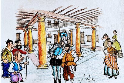 Don Quijote y Sancho estaban allí, en la calle Cautivo de Alcázar de San Juan, mirando una antigua casa vieja que ahora es un Museo. La Casa del Hidalgo, dicen. Pero antes, ¿qué era? Me contaron que le llamaban “La Casa del Rey”. Pero ahora ya no se nota. Todo está tan bien cuidado que cuesta imaginar otra historia. Me siento como atrapado en un sueño, incapaz de creer lo que veo, y me pregunto si realmente estoy despierto o soy un almacándida.