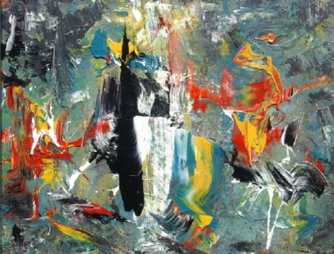 Una vez se ha manifestado el color del todo se tratará en tonos suaves de azul, mezclados con grises, pero que en ese proceso resultan leves y delicados. Como anteriormente, la forma se consolida con la intensificación del color: rojos y ocres muy vivos, verdes, azules. Sobre fondos de tonos más suaves, formando un contraste generalmente acusado. Finalmente pueden aparecer esbozos de figuras que por su verticalidad, nos sugerirán la figura humana, como vemos en la pintura que aparece en el cartel de esta exposición.