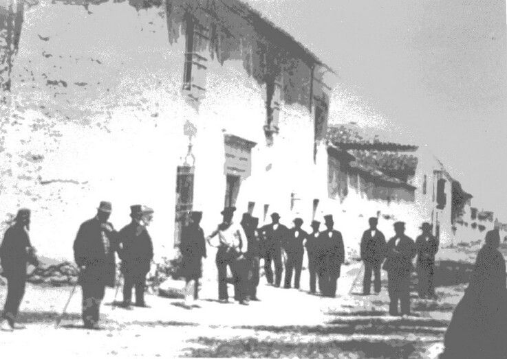 Y así se hizo; pero por carecer de Notario Argamasilla, las personalidades que hicieron posible la compra, se reunieron en el sitio denominado “La Vereda”, en término de Tomelloso, “en la entrada del pueblo” y fueron los siguientes: Antonio Millán, Melquíades Ginel, Francisco Sales Dotor, Manuel Añover, Tomás Montalbán, Martina Dotor: ésta última acompañada de su marido, Vicente Salinas, vecinos todos de Argamasilla de Alba, que, ante el mencionado Escribano, explican los pormenores de un inmueble o casa, señalada antes que había sido con los números siete, nueve y once de la calle denominada Empedrada Nueva de Argamasilla. Dichas tres casas, anteriormente, tuvieron que deslindarse y reunirse en una sola. Finca que lindaba a saliente con la calle antes mencionada, mediodía con la del Hospital, poniente con una propiedad de Tomás Montalbán, y al norte, con otra de Andrés Frías.
