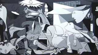 No voy a descubrir en estas lineas al genio, ni su compromiso, ni sus ideas. Tampoco que en el pais vecino es adorado y considerado uno de los suyos, mientras aquí se le ningunea o minimiza con demasiada frecuencia. Voy a lo genial del legado. La obra, como todo el mundo conoce, se puede admirar en el Reina Sofia de Madrid, desde el fin de la dictadura, por decisión testamentaria del autor.