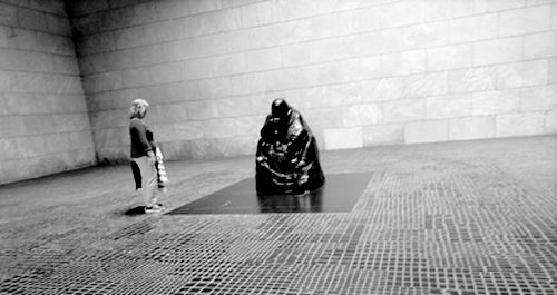 La entrañable escultura de una madre que estrecha entre sus brazos a su hijo fallecido, resulta especialmente conmovedora en contraste con el grandioso edificio, que hace que aún parezca más solitaria.
