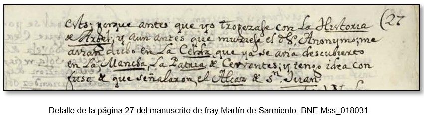 Detalle de la página 27 del manuscrito de fray Martín de Sarmiento. BNE Mss_018031