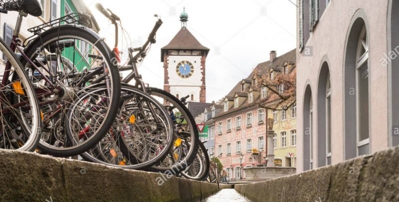 Bonjour à toutes et tous ! Hoy quiero hablar de la que yo he denominado « La ciudad de las bicicletas » . Me explico. Hace unos días visité la Selva Negra en Alemania y la ciudad más importante de la misma: Freiburg im Breisgau. Una visita muy recomendable y una ciudad con mucho encanto y ambiente. Aparte de lo agradable de pasear por sus calles y su « sabor » típicamente alemán, lo que más me sorprendió es el número de bicicletas con la que sus habitantes se desplazan por la ciudad. Fuera del centro, evidentemente había coches también, pero sobretodo en el centro, bicicletas. Ver las aceras atiborradas de ellas es un espectáculo. Observar cómo gente de todas edades, y recalco lo de « todas », se desplazan a trabajar, comprar o tomar una cerveza, también. Comprobar que la mayoría de los edificios tienen zonas exclusivas para aparcar las mismas o escuchar que es una de las ciudades con mas kilómetros reservados en sus calles para circular con bicicleta, más de 400, me dejó sorprendido. Ciertamente la ciudad es plana en su mayoría.