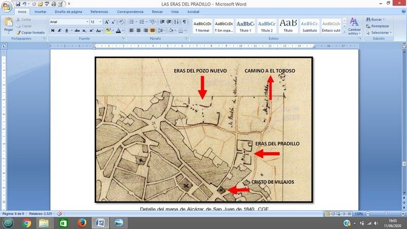 Hoy estas eras y el “pradecillo” han desaparecido, perdiéndose esta referencia geográfica de Alcázar. Con la ayuda de los documentos y la cartografía histórica disponible es posible situar este paraje descrito por Cervantes en el plano actual de Alcázar