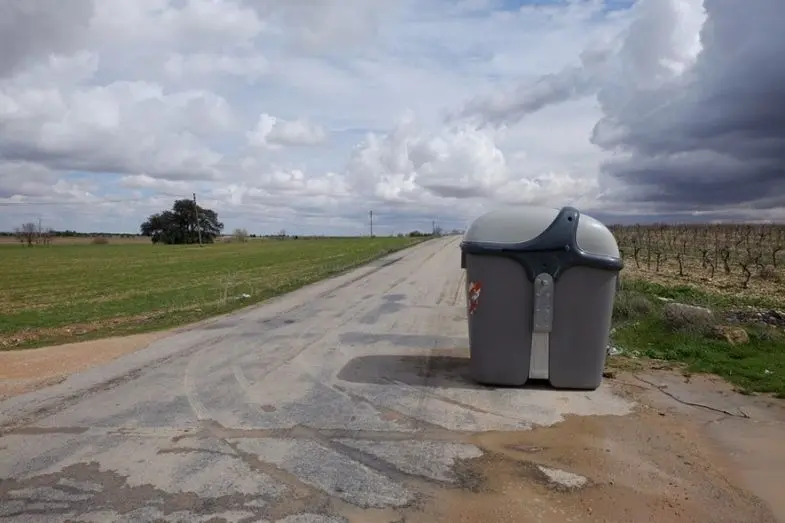 Este contenedor se obceca en obstruir la circulación poniendo en peligro al caminante tanto de un lado como del otro. Hasta ahora no ha pasado nada. Esperemos que siga así o bien se llegue a un acuerdo y mediante un talón como los que suelen poner en la ciudad, sin mediar permiso, evite el corrimiento de tan travieso contenedor. O se cambie de lugar, en el camino de enfrente en el que hay suficiente espacio o más cómodamente en un espacio que hay más adelante donde también sería cómodo al conductor (que bastante trabajo tiene con recoger tantísimos contenedores de la mancomunidad) y poniéndose de acuerdo con los vecinos. Aunque repito, que yo sepa en la ciudad no se pide permiso a nadie y a quien le toca se calla y no empuja el contenedor a la puerta del vecino o en medio de la calle; dudo de que sea el caso de este contenedor como dudo de que el conductor sea el que deja eso en medio de la carretera. Lo cierto es que no es la primera foto que le hago tanto bien colocado como así de mal. Y no digamos cuando se les ocurre tapar con toda clase de contenedores la fachada de la oficina de Correos de Alcázar de San Juan… o poner los contenedores en una esquina impidiendo la vista tanto a conductores como a peatones…