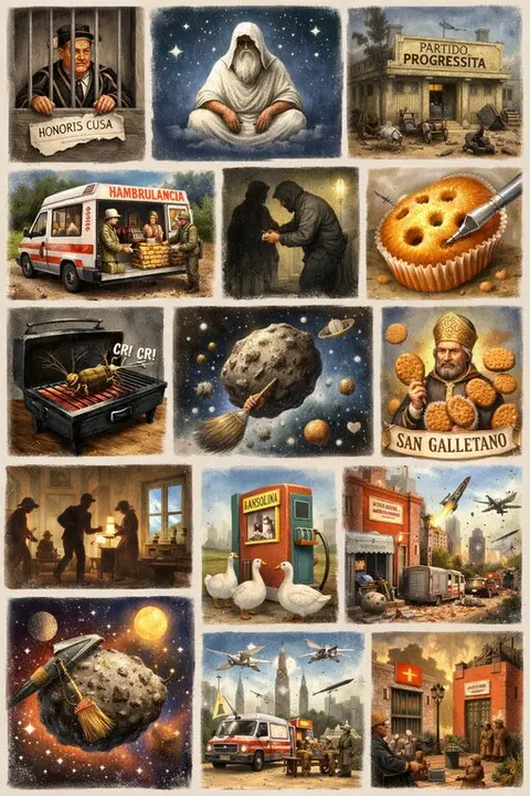Hambrulancia: Vehículo con el que se reparten alimentos en las guerras a los heridos y enfermos como remedio a las hambrunas que acarrean los conflictos armados.