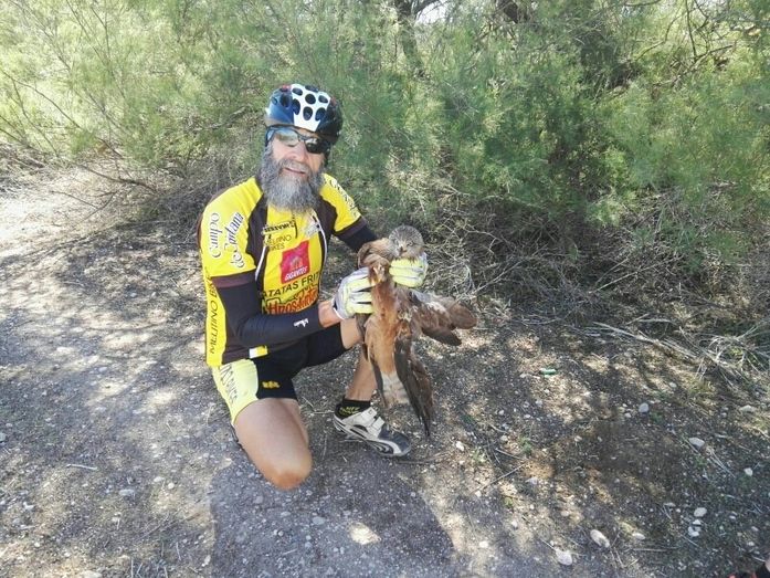 Tres ciclistas alcazareños rescatan a un águila milano