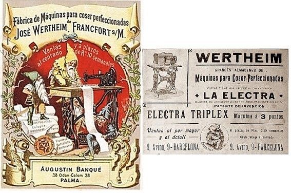 En los primeros años del siglo XX la gran competidora de SINGER (incluso en el apartado decorativo) fue la alemana WERTHEIM, cuyo fundador Joseph Wertheim (1834-1899) había trabajado como aprendiz en la fábrica SINGER de New York. La gran factoría estaba en Frankfurt, pero a partir de 1915, con la industria alemana volcada en la I Guerra Mundial, Karl Gustav Wertheim (1868-1945) llegó a un acuerdo con los otros herederos y empezó a producirlas en Barcelona, donde residía desde 1888, con la marca WERTHEIM RÁPIDA S.A. La empresa siguió el exitoso modelo comercial de SINGER: muchas sucursales, impartición de cursillos y venta a plazos. Con menores dificultades de abastecimiento y mano de obra que en la Alemania de postguerra, y exentas de impuestos de importación, las WERTHEIM españolas pudieron venderse con la misma cuota semanal que las SINGER: dos pesetas y media.