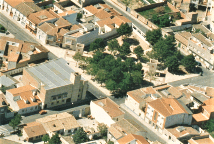 Esta Plaza era una ERA donde se trillaba el trigo y se plantaron pinos de un metro de altura. De ahí el nombre "Pinillos". La foto que se aporta es de 1957 en blanco y negro, se distingue perfectamente lo que hoy es *La Bodega de la Tercia* y una hilera de casas bajas que son las que corresponden a calle Solidaridad con calle Almagro sin desarrollar las calles ni asfalto alguno, no existía plaza en sí, no existía la iglesia San Rafael ni el Colegio Picasso, eran ERAS donde gran cantidad de empleados de Renfe fueron construyendo poco a poco el barrio.