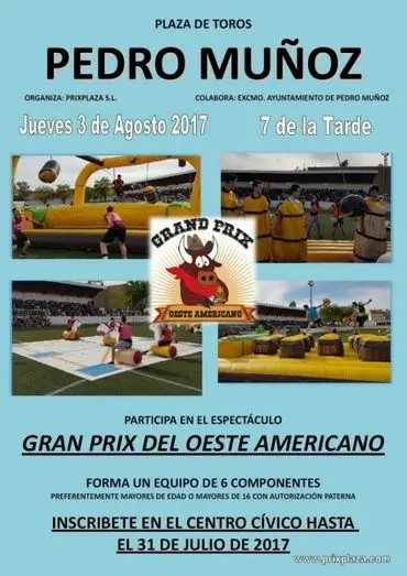Uno de los primeros avances de la Feria 2017 en Pedro Muñoz es la celebración del espectáculo GRAND PRIX DEL OESTE AMERICANO, con hinchables de gran formato, nuevos y muy divertidos.