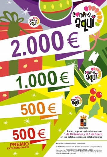 En la tarde del 5 de enero, tras la recepción oficial a sus majestades los Reyes Magos, se llevará a cabo el sorteo de los premios de “Compra Aquí”, así como el sorteo de una noche en Paradores para los comerciantes participantes.