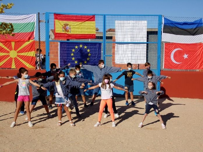 Los alumnos de Infantil (que decoraron el exterior y los de Primaria, el interior), se organizaron por grupos y países, representando los de Infantil, Estonia y Bulgaria, 1º y 3º de Primaria a Macedonia del Norte, 2º de Primaria a Turquía, y 4º de Primaria, a España. Todos ellos hicieron entrega de las credenciales a los diferentes representantes de los centros que conforman el proyecto, y el Ampa entregó un molino confeccionado con material de reciclaje, muy original, con las banderas de cada país en las aspas.