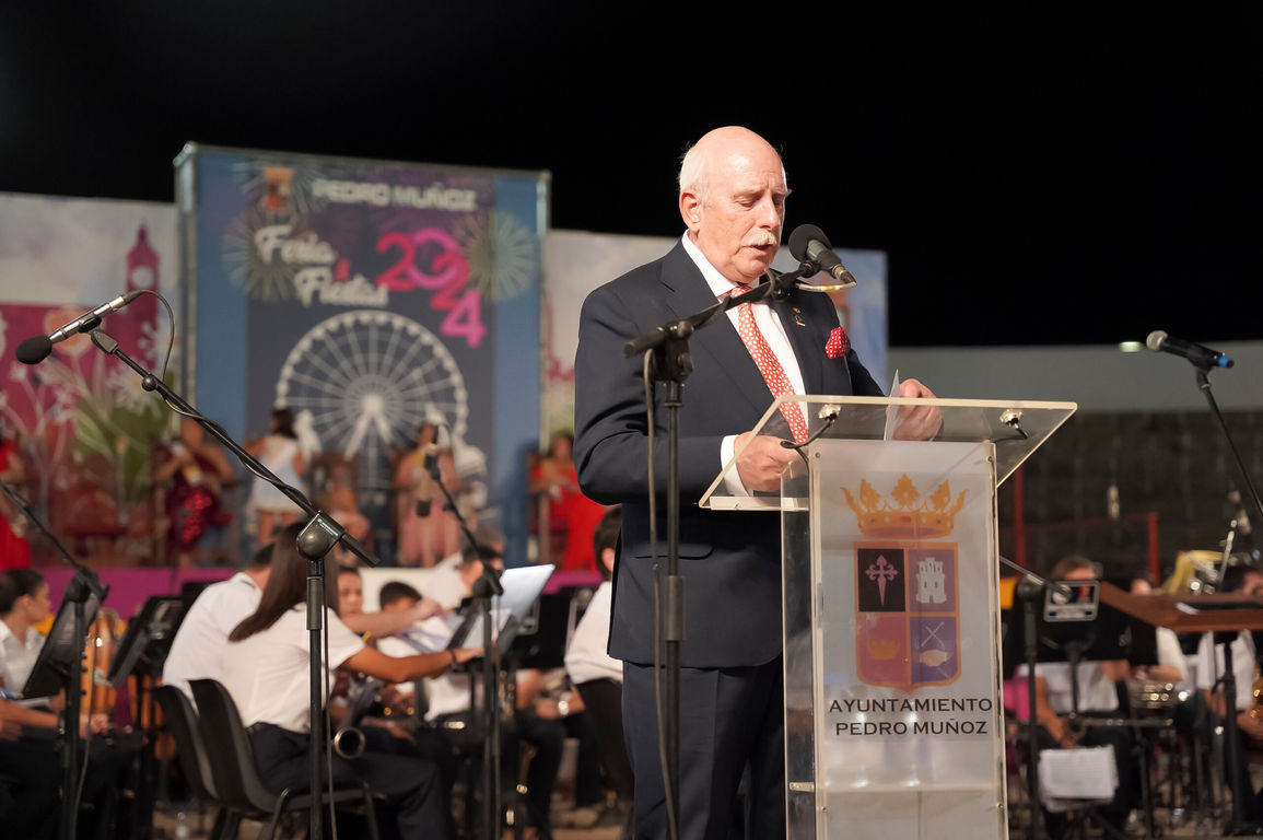 Como broche de oro de la noche, la Banda Municipal de Música de Pedro Muñoz ofreció un concierto junto a la Tuna Estudiantina Pedroteña «Juglares del Mayo» bajo el título «Homenaje a la Tuna». La Tuna hizo su aparición estelar atravesando todo el público y la Banda la acogió en el escenario, un sentido homenaje que creó un momento de gran emoción para todos. Además, la Tuna fue la encargada de poner voz al querido himno de Pedro Muñoz. Un tributo que destacó la apuesta de nuestra localidad por la riqueza cultural y la trayectoria musical, poniendo de manifiesto el talento y dedicación de ambas agrupaciones.