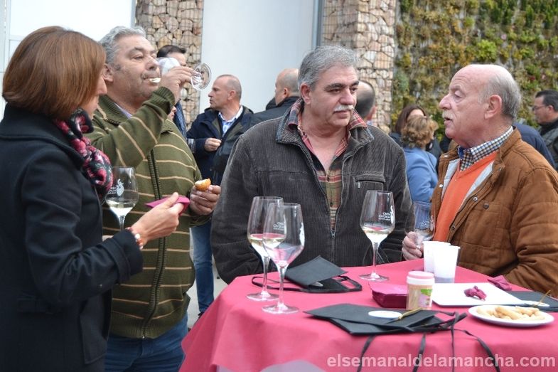 Sobre el escenario, en primer lugar, han presentado sus vinos los responsables de la Cooperativa San Isidro, Miguel Fernández Diaz, presidente; y Mario Morales, enólogo. Concretamente, dos blancos de la marca Carril de Cotos (D.O. La Mancha): un airén afrutado, "de los más populares y que más gustan, con la uva más sana y de viñedos más viejos, muy fresco y bien estructurado"; y un verdejo," con muy buena aceptación, ligero, fresco y frutal, muy apetecible para el tapeo".