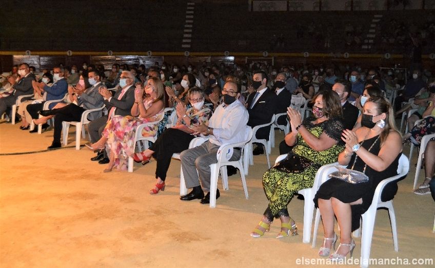 Las fiestas patronales de Pedro Muñoz comenzaron en la noche de este sábado, con un pregón musical llevado a cabo en la plaza de toros con todas las medidas de seguridad y reducciones de aforo que marcan los protocolos contra la covid. La Banda Municipal de Música, dirigida por Roberto Manjavacas, el Grupo Folklórico “Virgen de los Ángeles”, la Tuna Estudiantina y la Agrupación Musical “Javier Mayoral” fueron los protagonistas de este “Banquete Musical”, además de las damas y los rondadores que fueron presentados en el mismo acto.