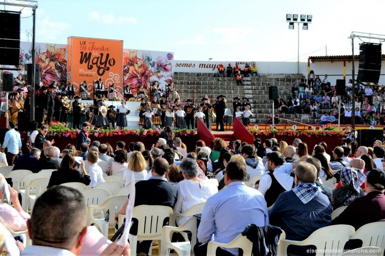 Villa y Corte del Mayo Manchego, Pedro Muñoz ha vuelto este fin de semana a celebrar sus tradicionales Fiestas del Mayo Manchego, declaradas de Interés Turístico Nacional, recuperando con éxito y gran participación actividades como la muestra gastronómica, la noche de ronda o el gran festival de folclore en la plaza de toros, donde esta tarde, con sol y calor en los tendidos, se ha completado prácticamente el aforo.