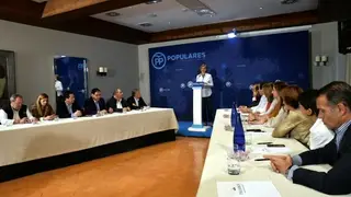 En la reunión de Presidentes Provinciales del PP de Castilla-La Mancha han intervenido los cinco presidentes provinciales del PP castellano-manchego: José Julián Gregorio (Toledo); Francisco Cañizares (Ciudad Real); Ana Guarinos (Guadalajara); Benjamín Prieto (Cuenca) y Francisco Núñez (Albacete), para denunciar las mentiras y los incumplimientos de Page en cada una de las cinco provincias.
