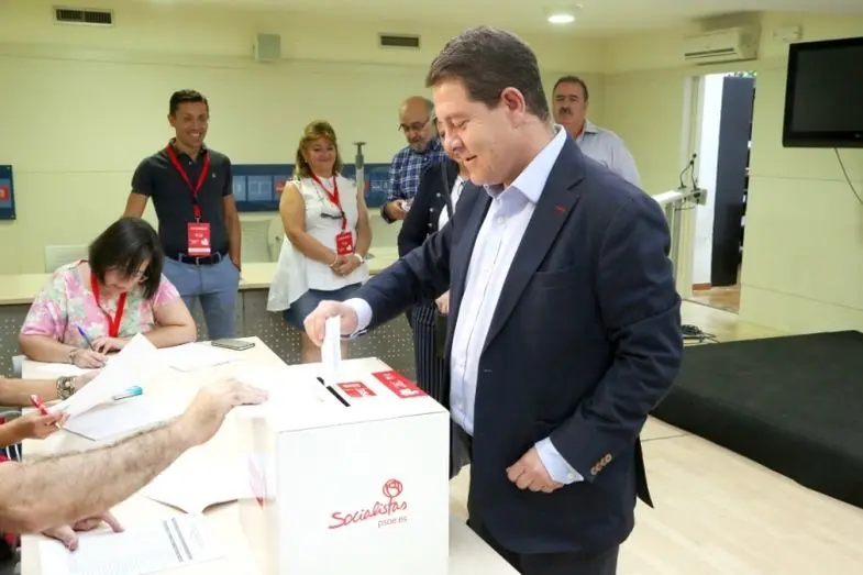 El presidente de Castilla-La Mancha y candidato a la Secretaría General del PSOE, Emiliano García-Page, ha ejercido su derecho a voto en el proceso de Primarias del PSCM-PSOE en la sede de Toledo de Santa María la Blanca.
