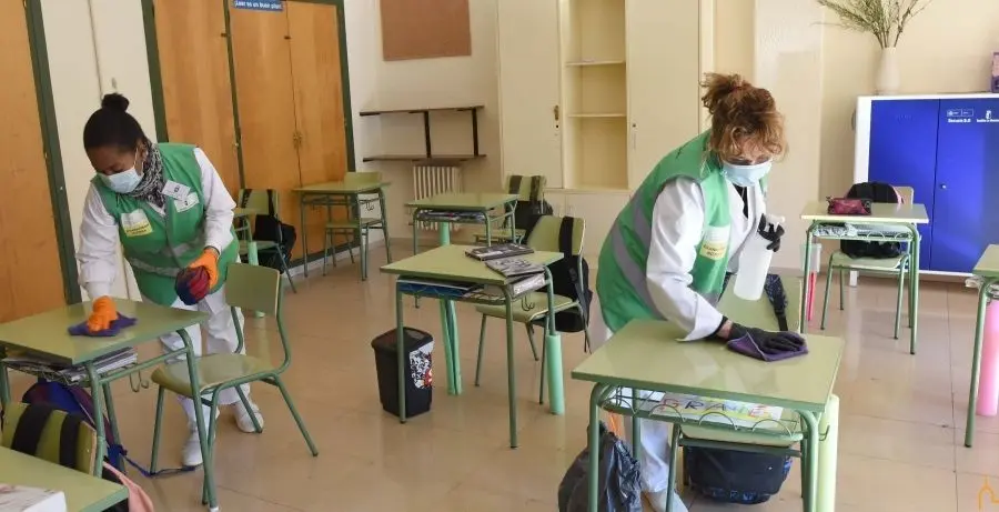 A través del programa Colegio Seguro se refuerza la limpieza de los centros educativos, es decir, que no se sustituyen las labores de limpieza ya existentes, sino que se suman a éstas. Estos trabajos se realizan durante la jornada lectiva, en horario de 9 a 14 horas y el resto de la jornada hasta completar las 6 horas de los trabajadores y trabajadoras, se establecerá en función de lo que dispongan los ayuntamientos en función de sus necesidades. En estas labores de limpieza se incide de manera especial en la desinfección de los objetos que tocan con más asiduidad los escolares, como son los pomos de las puertas, las propias puertas, grifos, sanitarios, etc.