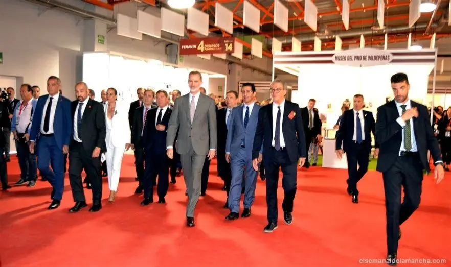 Su Majestad ha sido recibido por el presidente de Castilla-La Mancha, Emiliano García-Page; y por José Manuel Caballero, presidente de la Diputación provincial de Ciudad Real y de FENAVIN, así como por la alcaldesa de Ciudad Real y numerosas autoridades nacionales, regionales y provinciales, con el ministro de Agricultura, Pesca y Alimentación, Luis Planas, en cabeza.