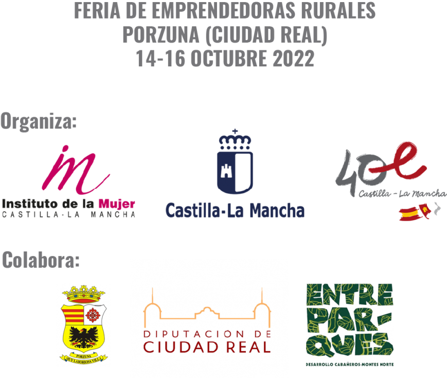 Promover el emprendimiento y consolidar empresas ya existentes de mujeres son los objetivos de la Feria de Emprendedoras Rurales que se celebrará en Porzuna entre los días 14 y 16 de octubre. Una cita ineludible para las mujeres empresarias del medio rural que la Consejería de Igualdad, a través del Instituto de la Mujer de CLM, ha organizado para favorecer el encuentro y el negocio; y al mismo tiempo evidenciar que la mujer emprendedora tiene mucho que decir y hacer en la lucha contra la despoblación.