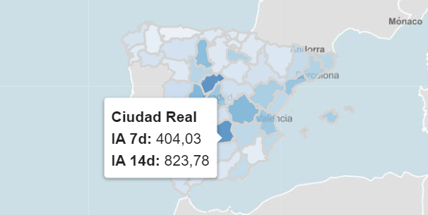 Según ha informado, a fecha 12 de enero, el porcentaje de camas ocupadas por pacientes COVID-19 en la provincia de Ciudad Real asciende al 20,7% y el de pacientes COVID-19 en unidades de críticos al 50,6%; siendo la tasa de incidencia acumulada en los últimos 14 días de 848,8 casos por 100.000 habitantes, con un porcentaje superior al 32% en los mayores de 65 años (415,6 casos por 100.000 habitantes mayores de 64 años registrados en los últimos 7 días), y un 22% de positivos en las pruebas diagnósticas que se realizan.